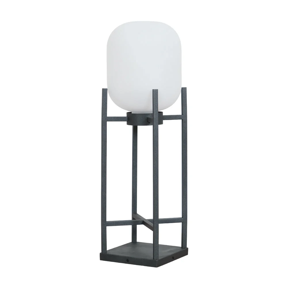 Die moderne Außenstehleuchte Novara im Laternenstil verbindet skulpturale Form mit praktischem Design. Ihr Schirm aus Milchglas ruht auf einem minimalistischen Metallrahmen und verbreitet ein sanftes, stimmungsvolles Licht, das an die Wärme von Kerzenlicht erinnert und dennoch ausgesprochen modern wirkt. Dank Solarbetrieb absorbiert die Leuchte tagsüber Sonnenlicht und leuchtet nachts automatisch auf. So verleiht sie Terrassen, Gärten und Seeufern ruhige Eleganz.